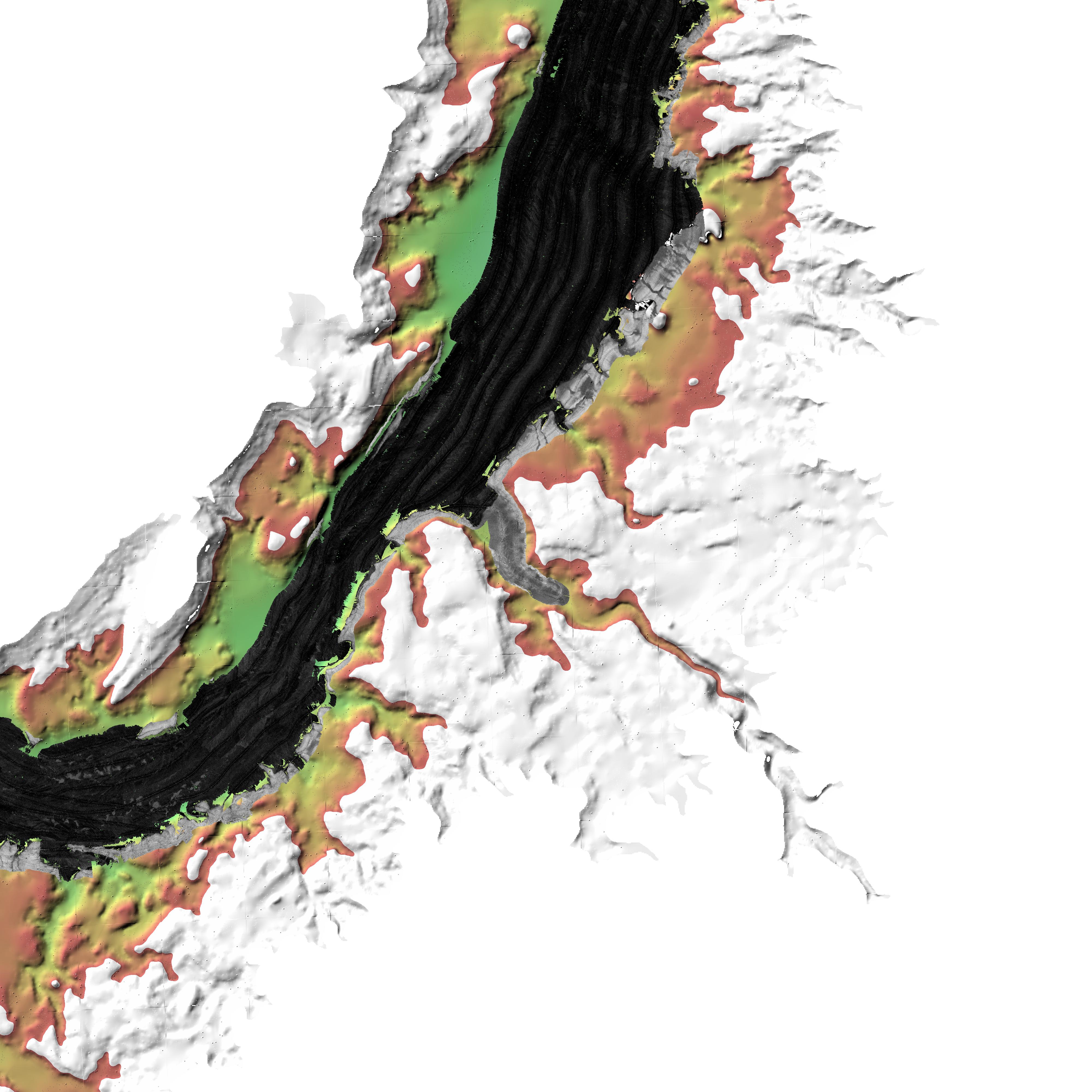 Bathymetry --- Backscatter --- Pre-fill topography |