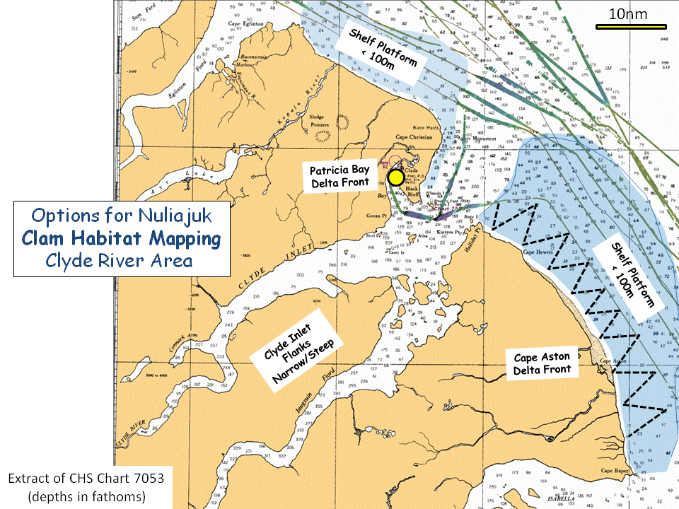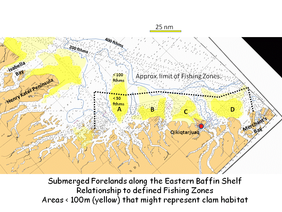 100m) are potential clam habitat sites. The shelf consists of a series
