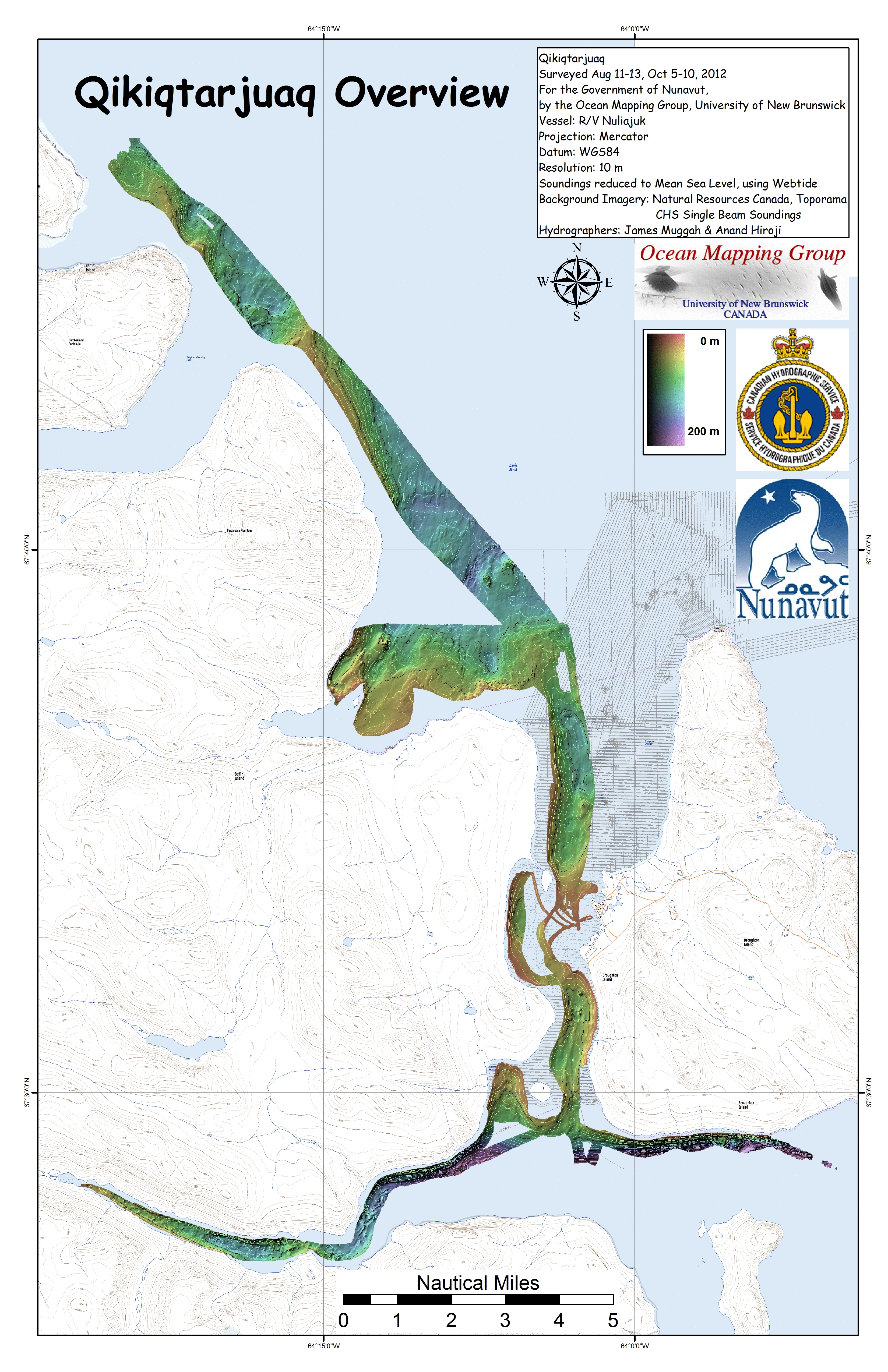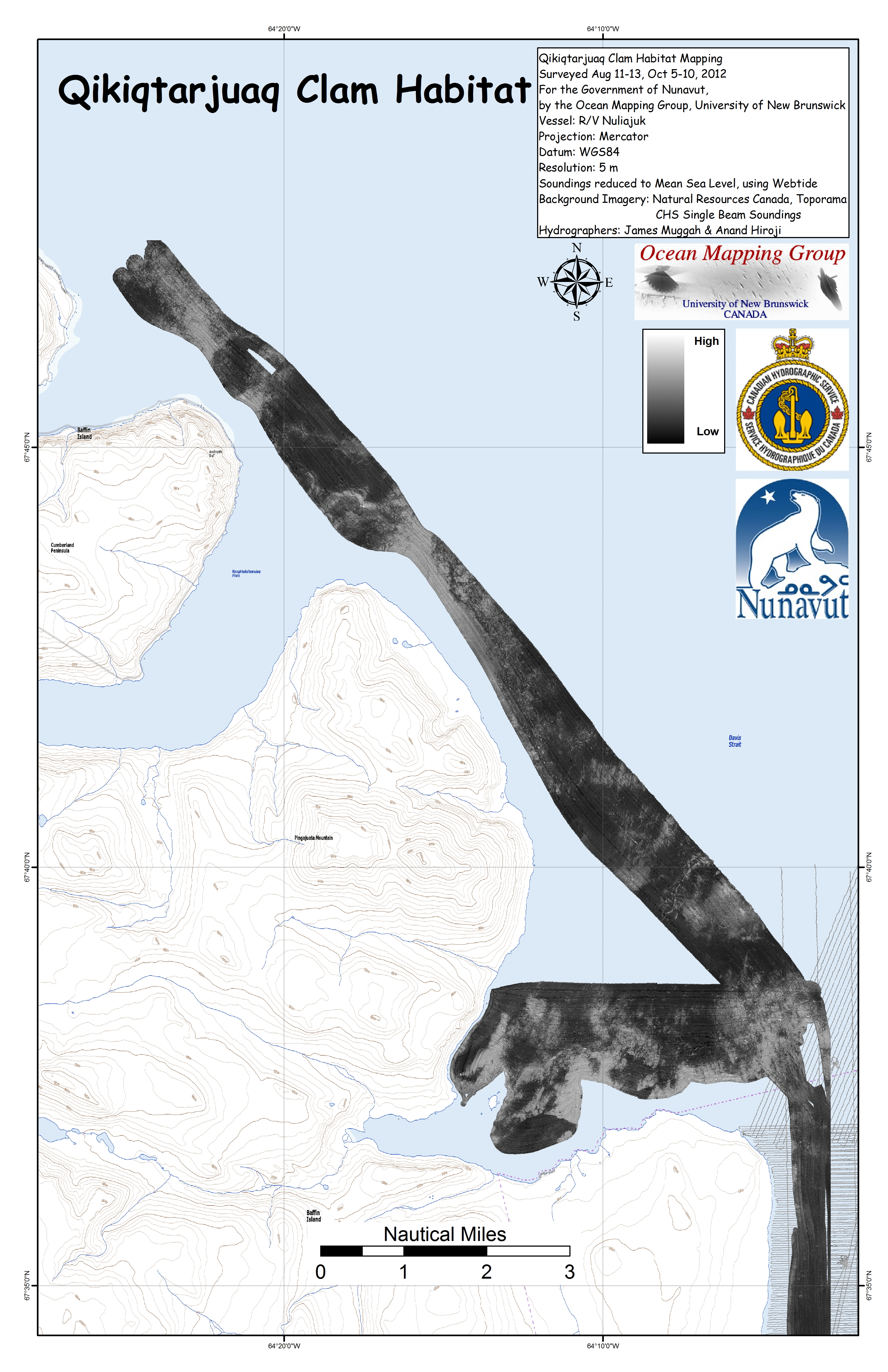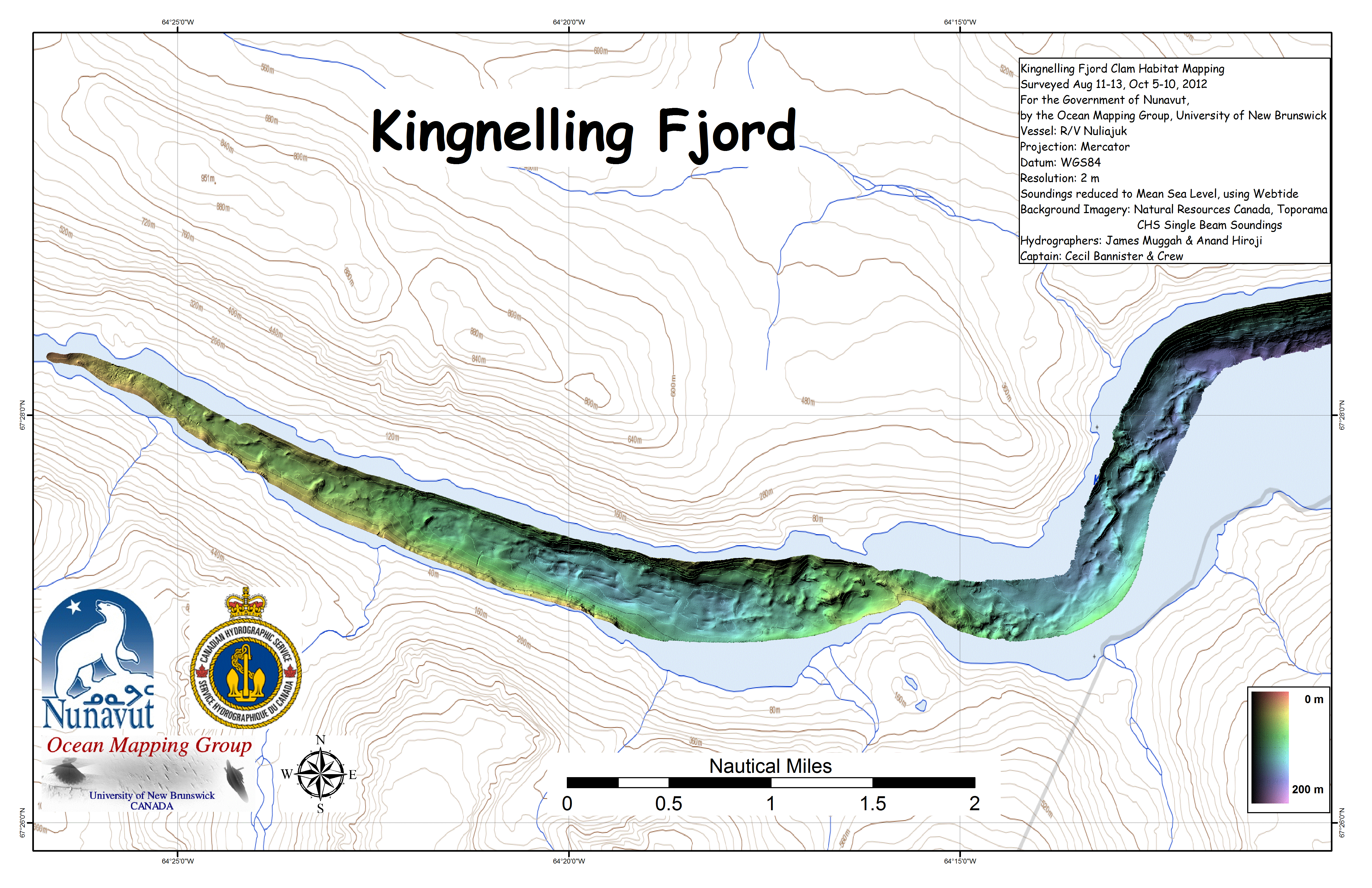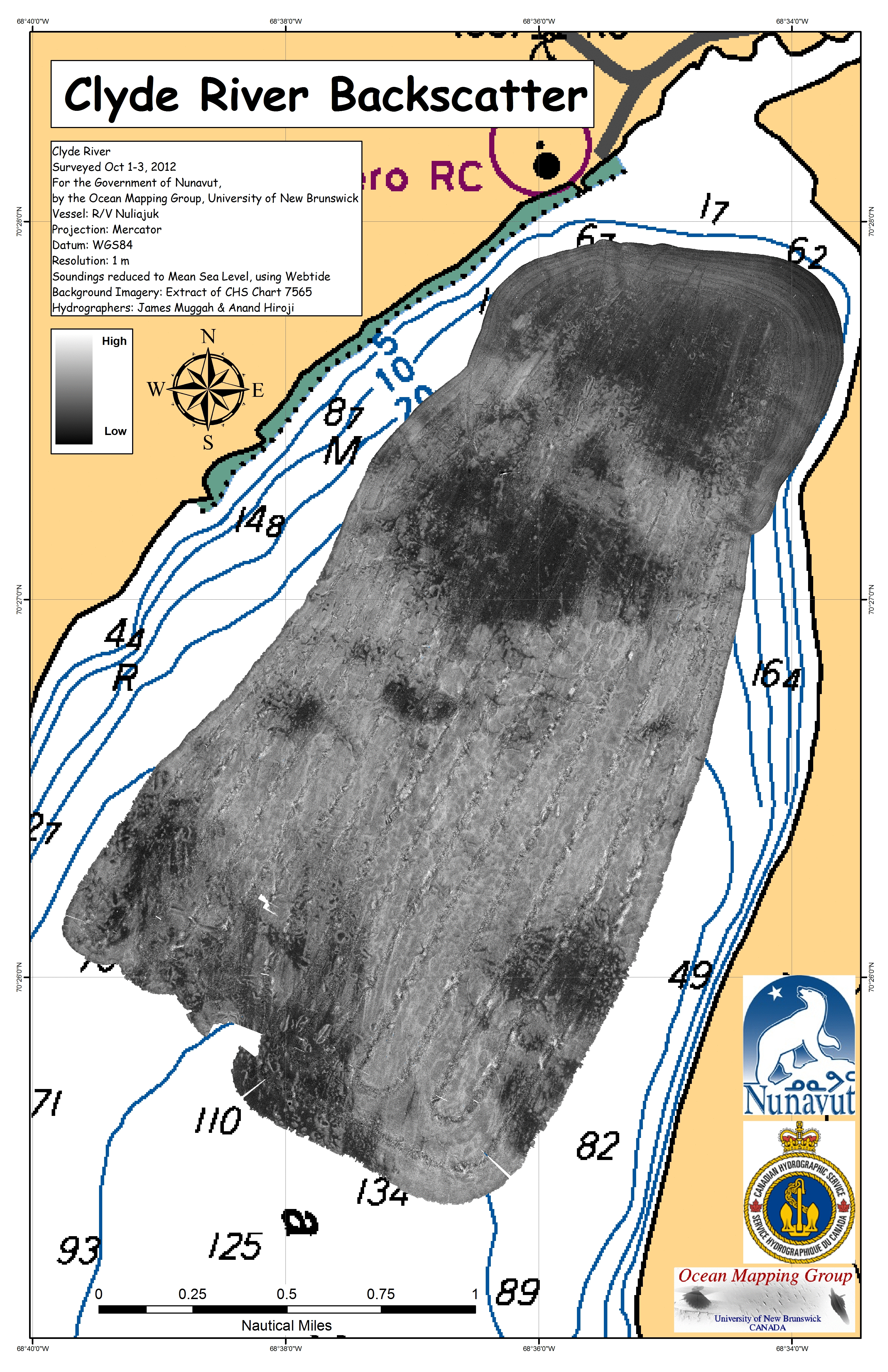 Iqaluit. Apart from a 2 day window in mid August, all the Nuliajuk mapping in Nunavut took place during a 30 day period covering the full month of October. The UNB mapping team boarded in Clyde River and disembarked in Iqaluit. The main target areas were:
