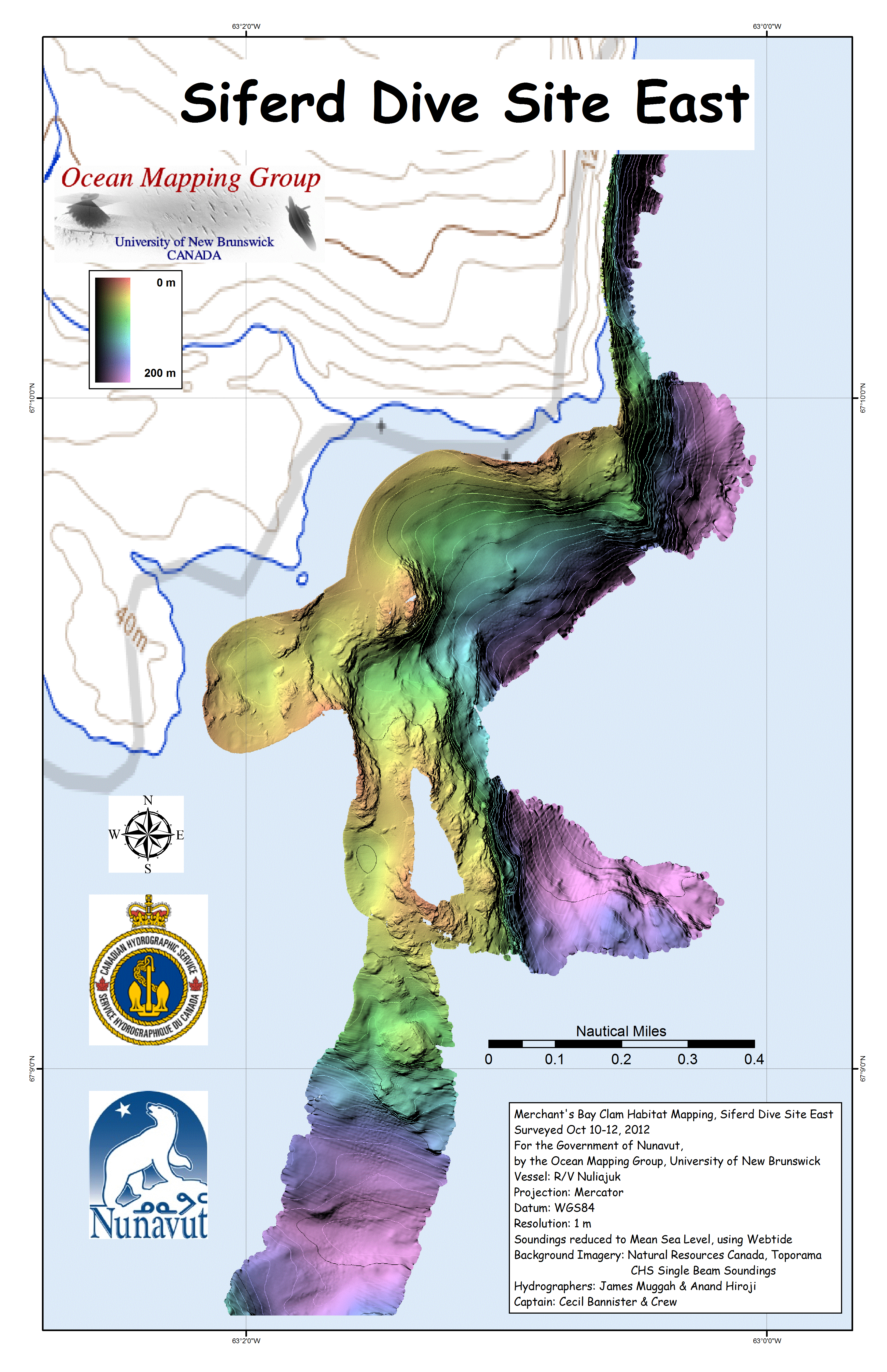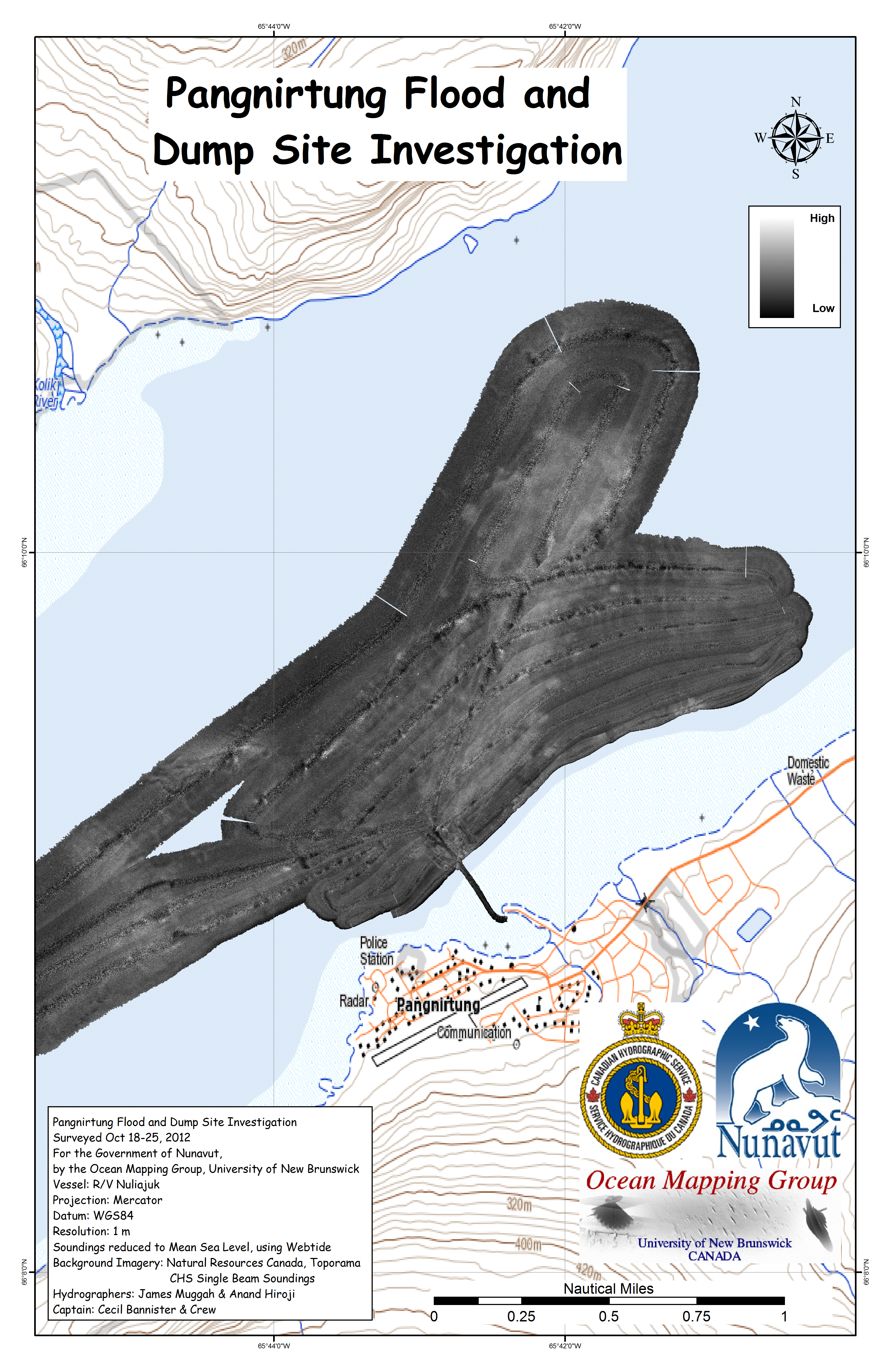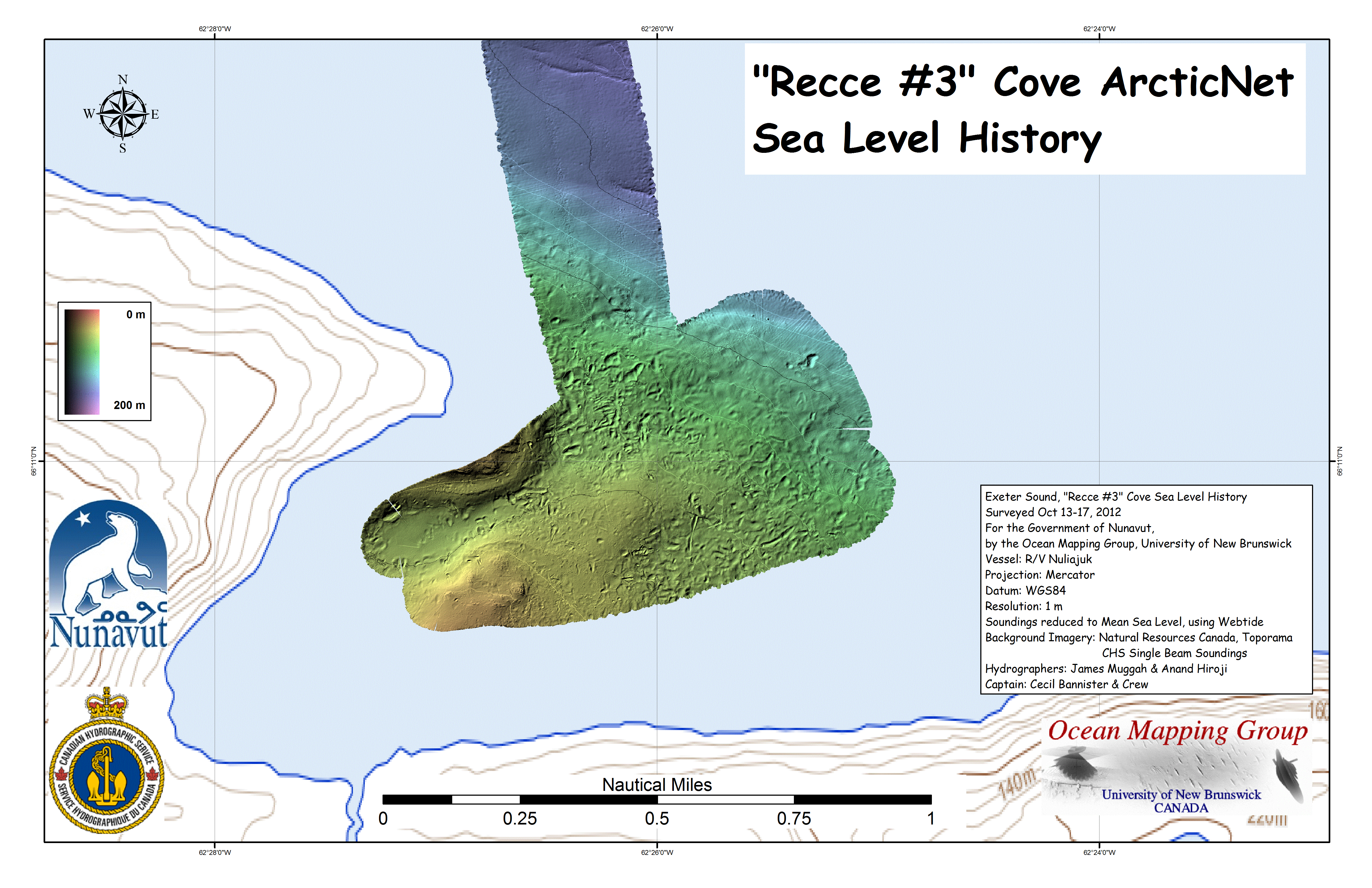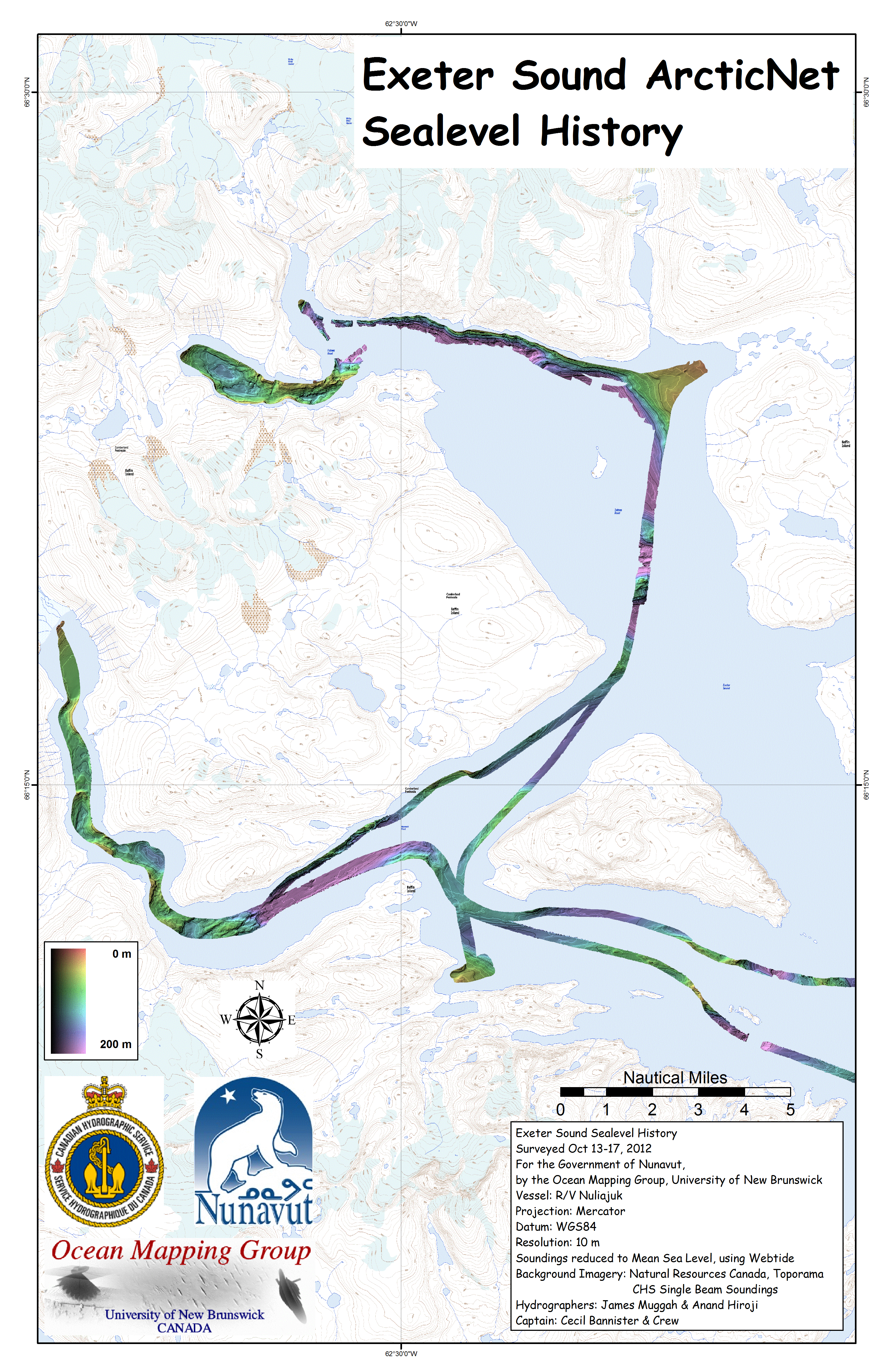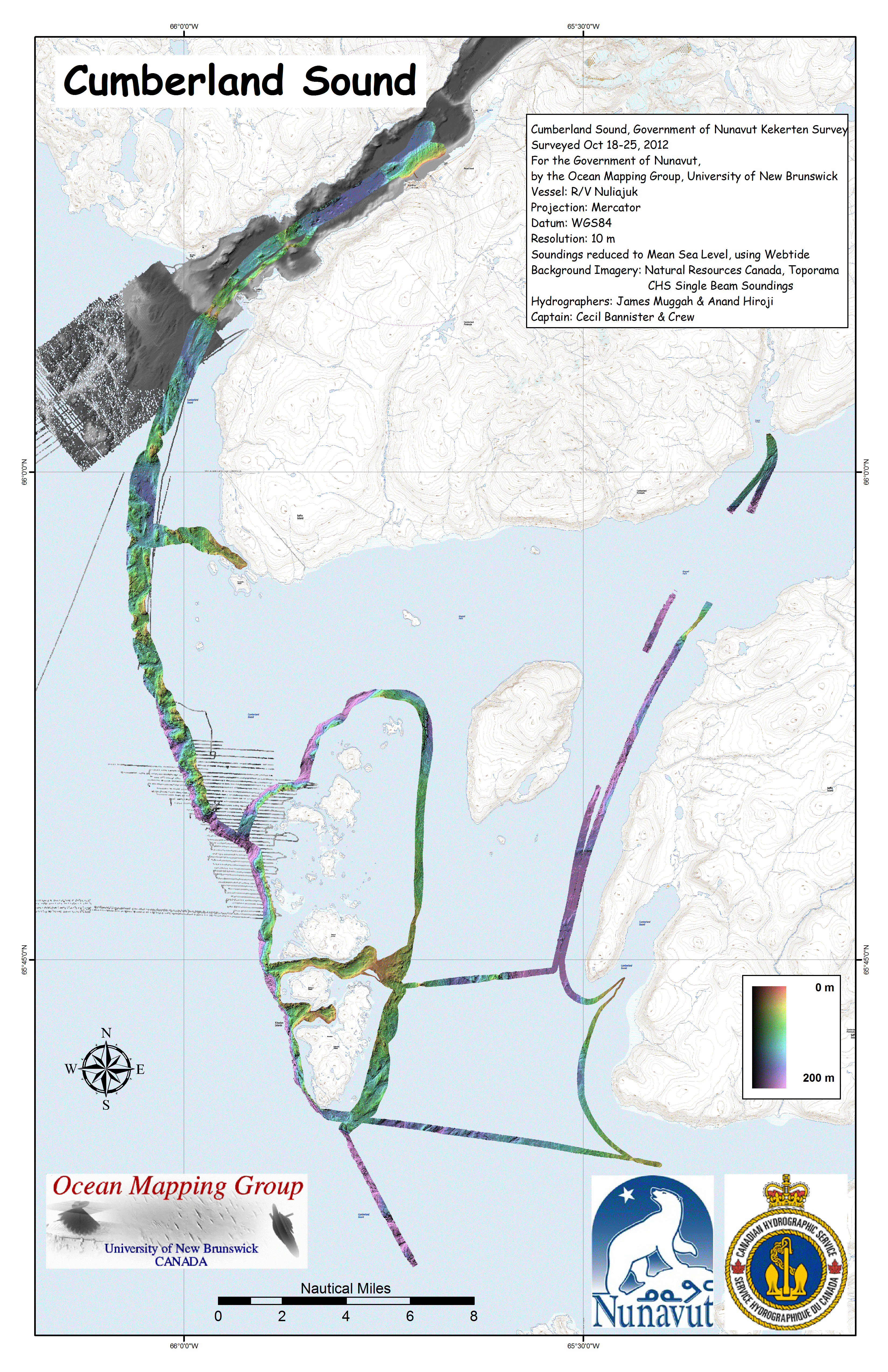 Iqaluit. Apart from a 2 day window in mid August, all the Nuliajuk mapping in Nunavut took place during a 30 day period covering the full month of October. The UNB mapping team boarded in Clyde River and disembarked in Iqaluit. The main target areas were: