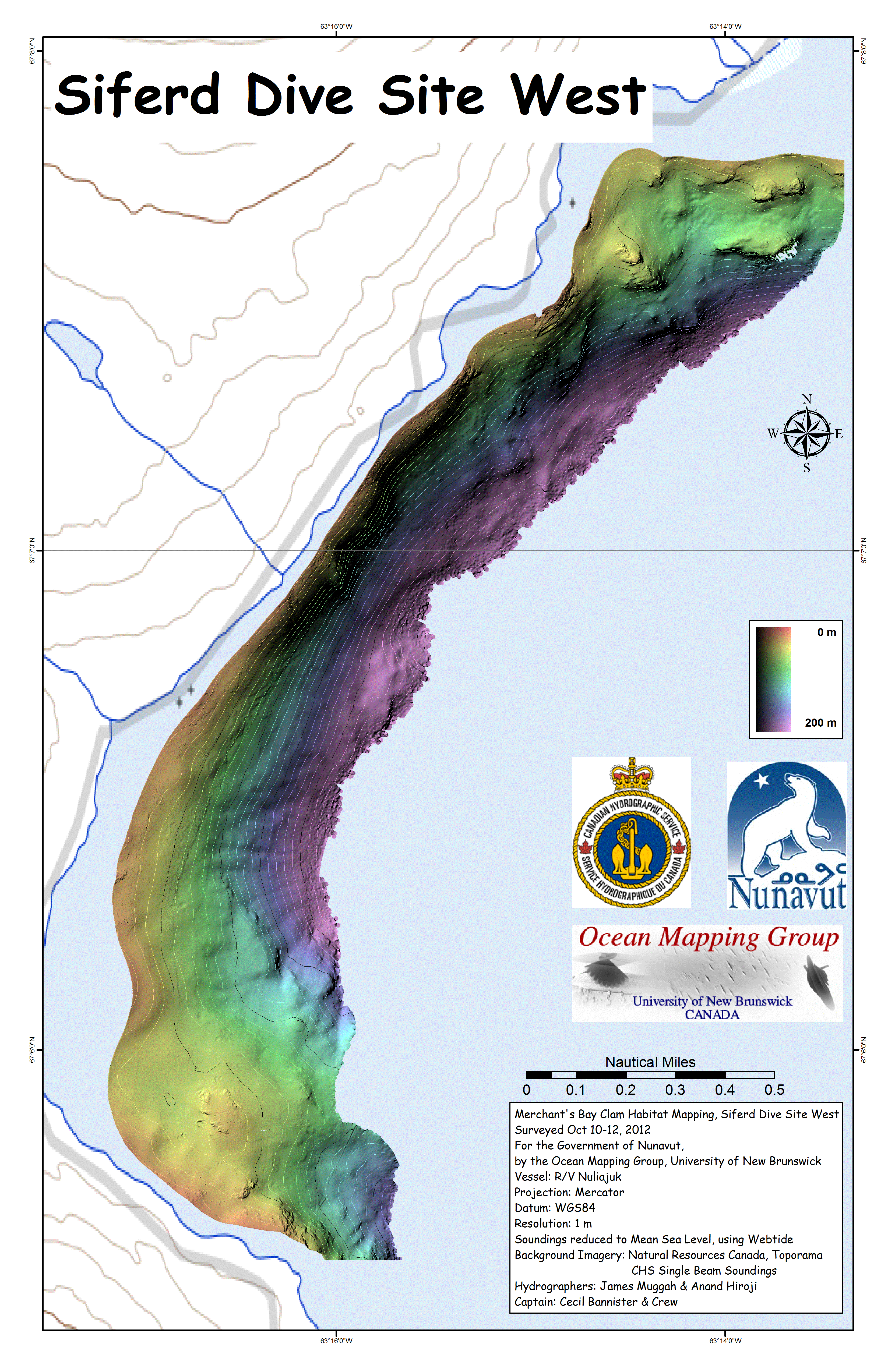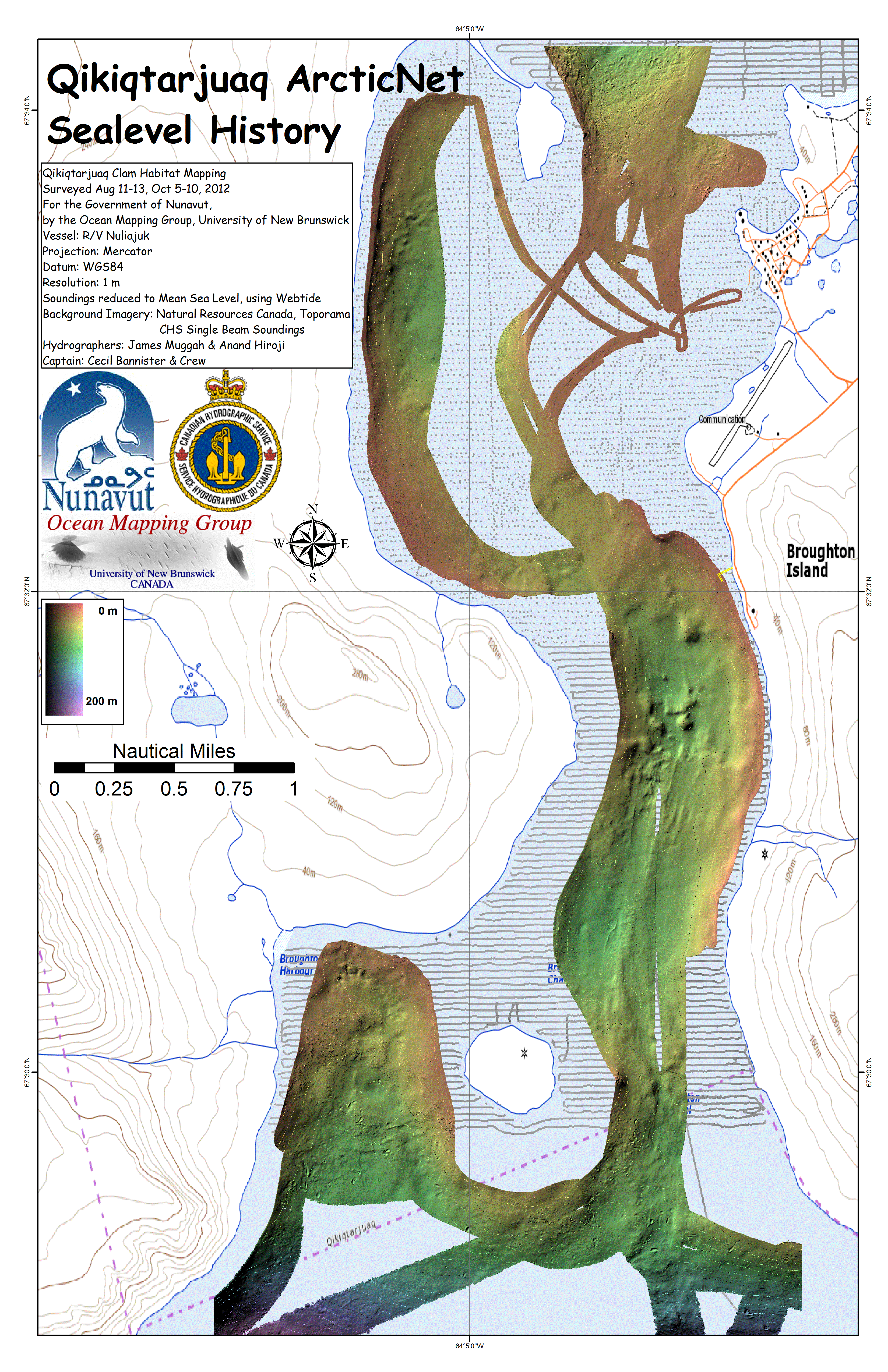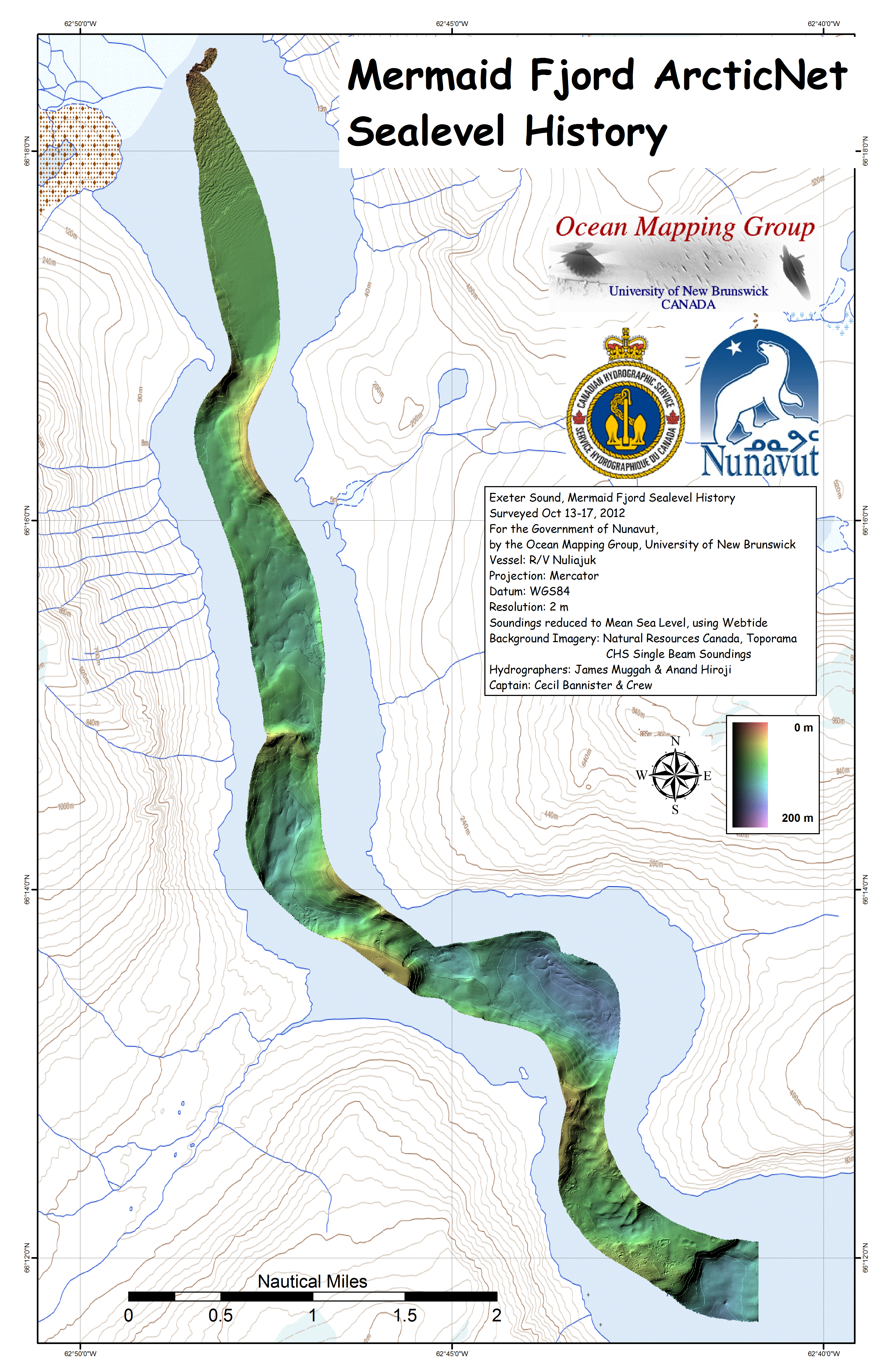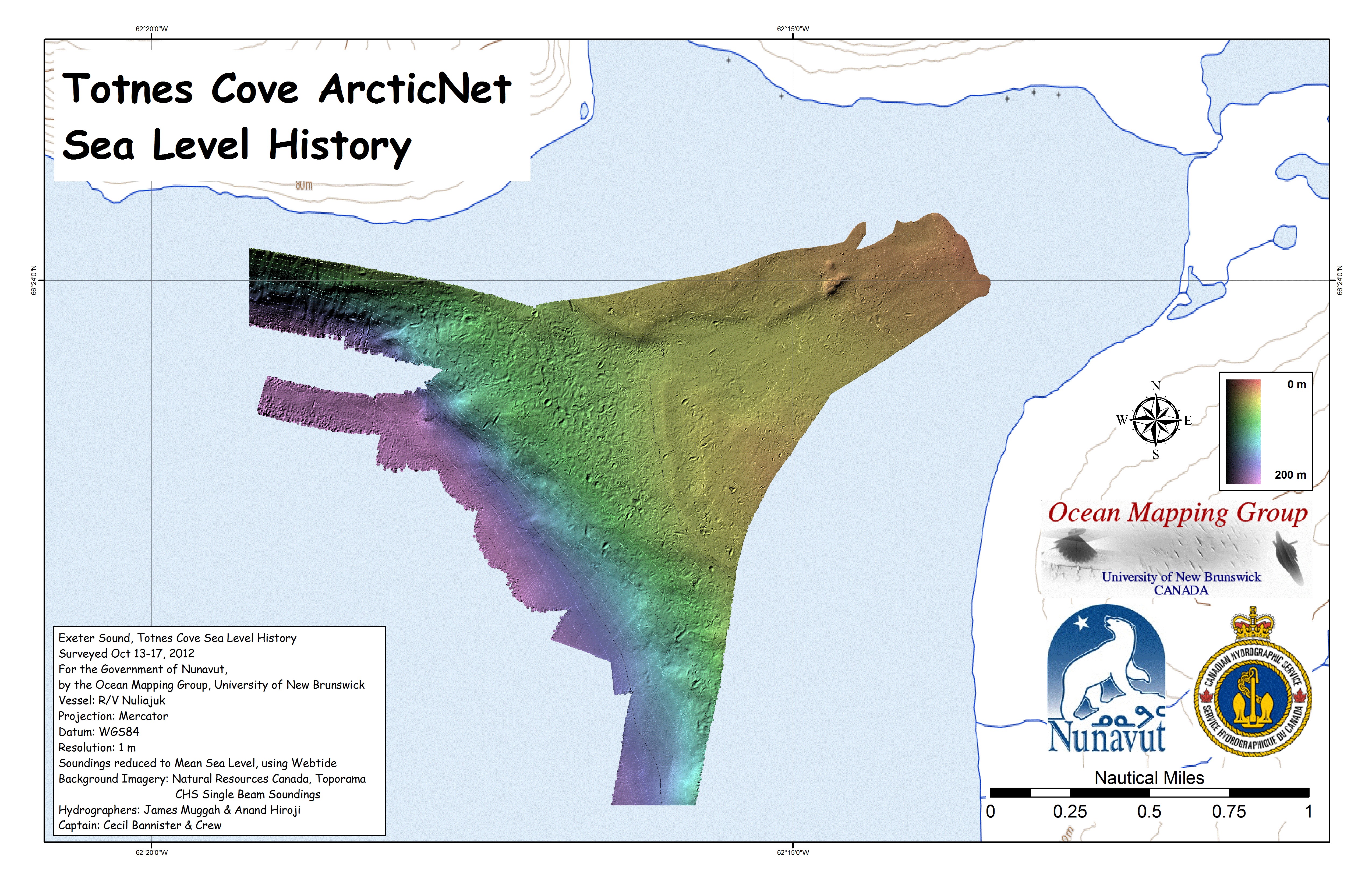 Iqaluit. Apart from a 2 day window in mid August, all the Nuliajuk mapping in Nunavut took place during a 30 day period covering the full month of October. The UNB mapping team boarded in Clyde River and disembarked in Iqaluit. The main target areas were: