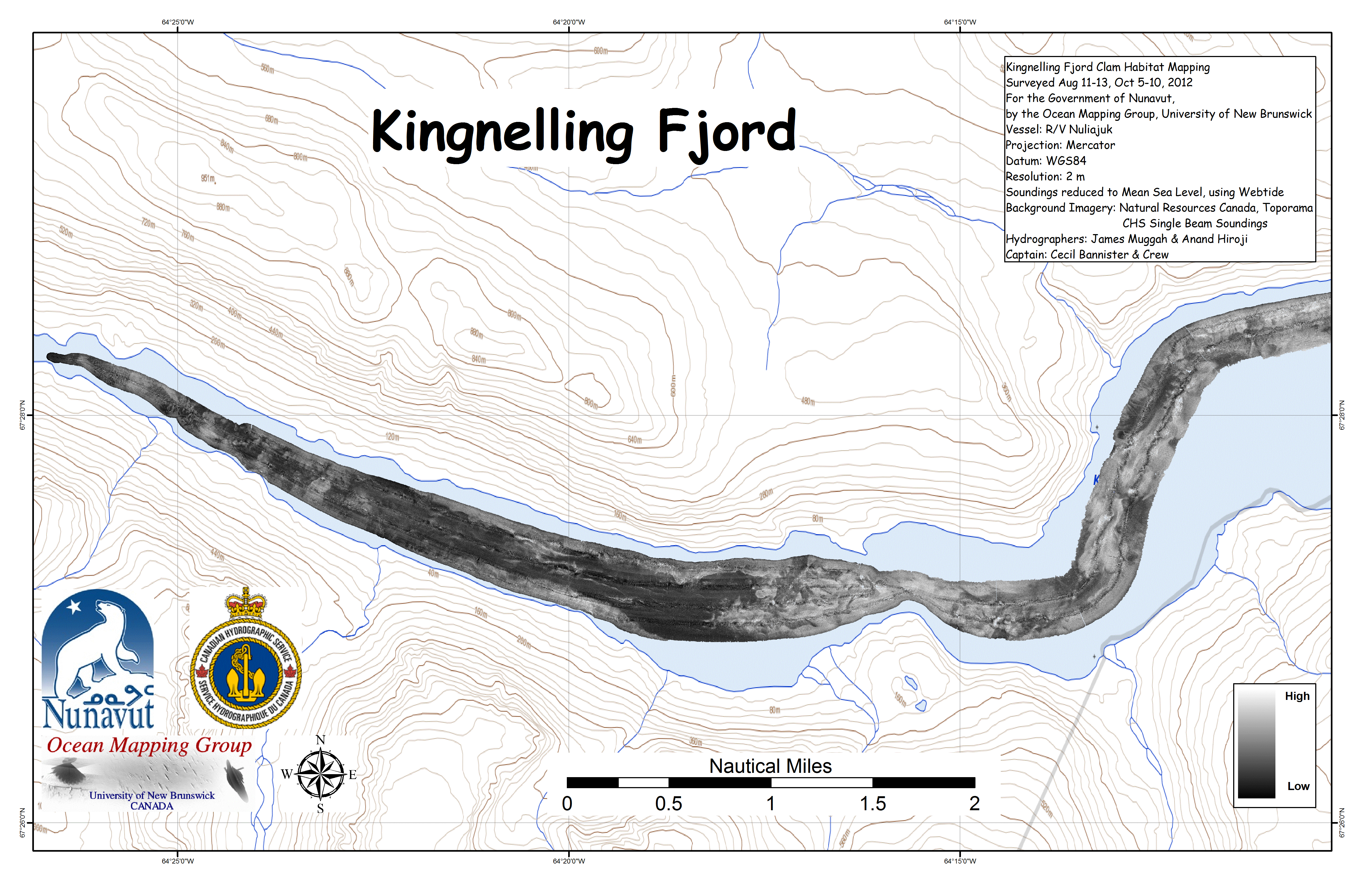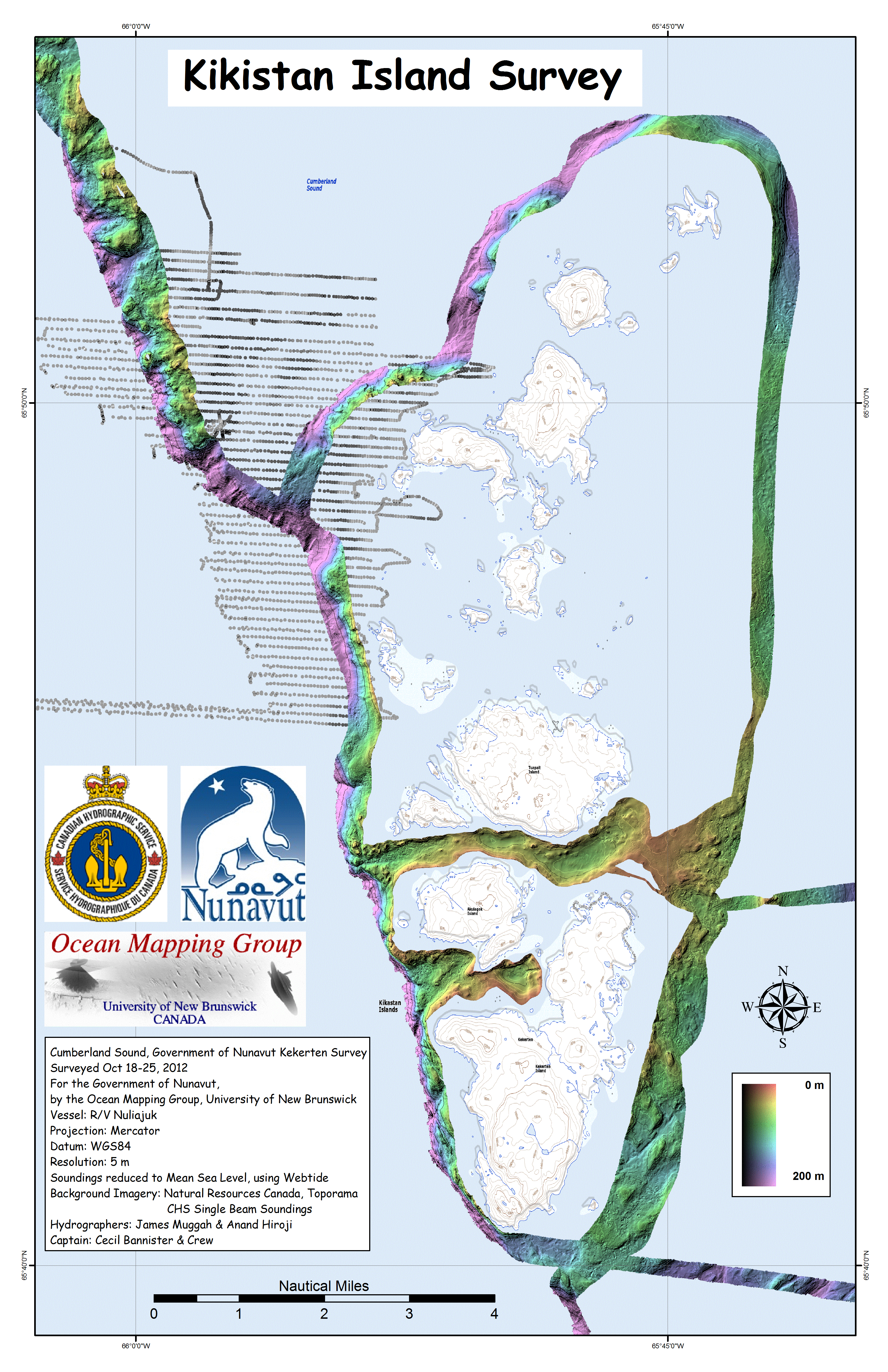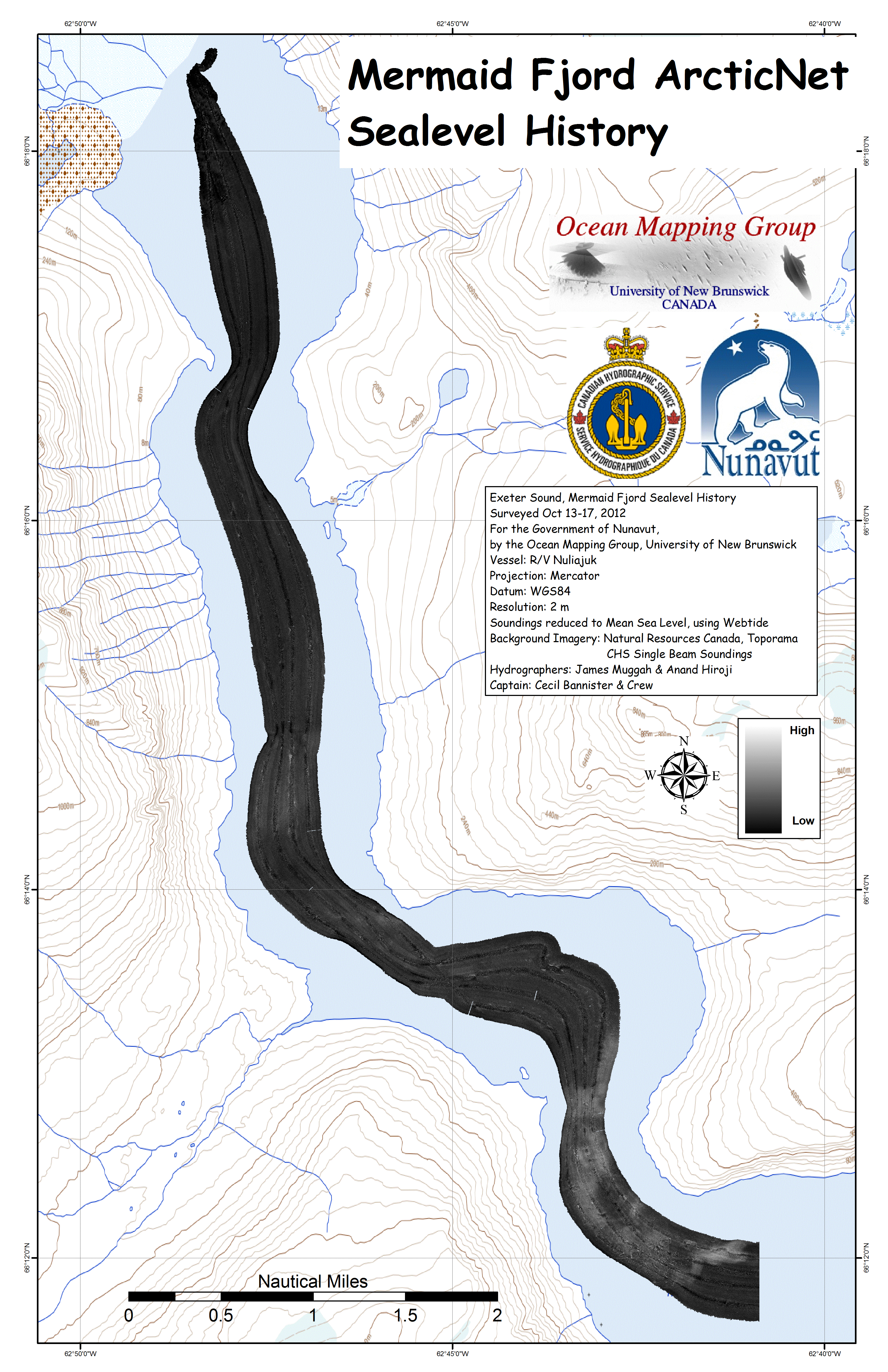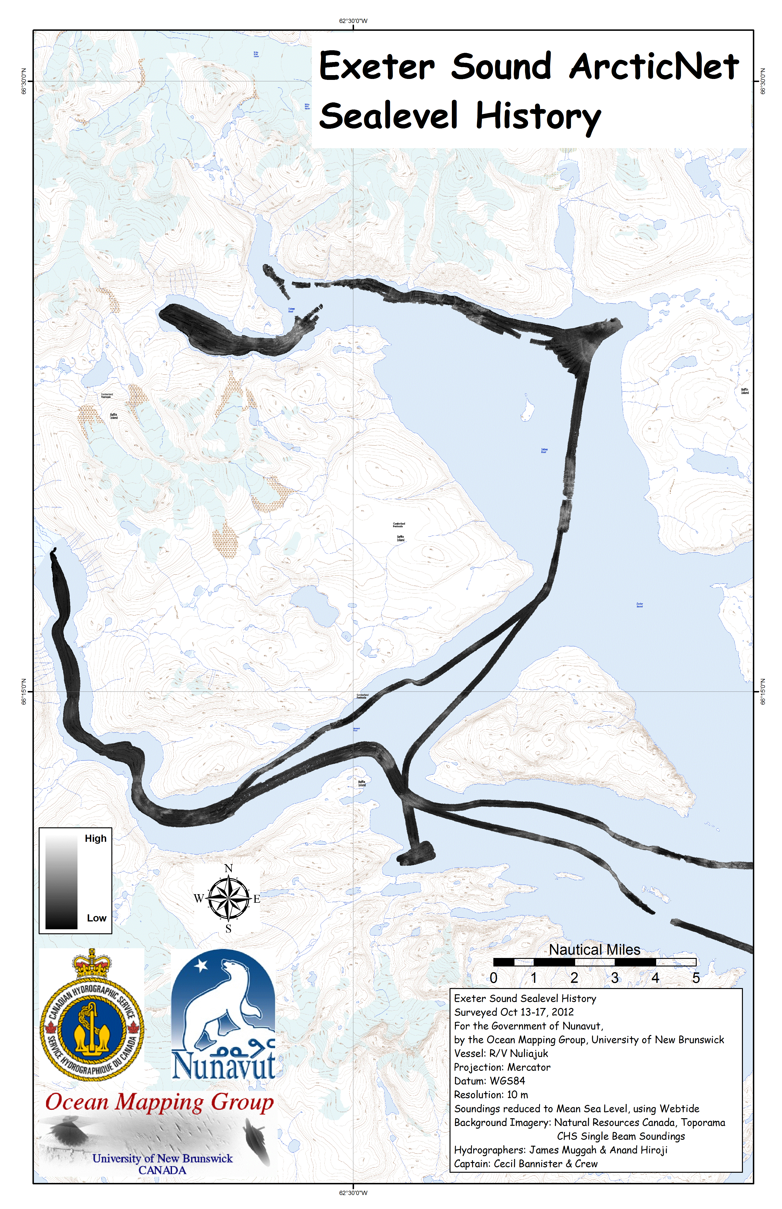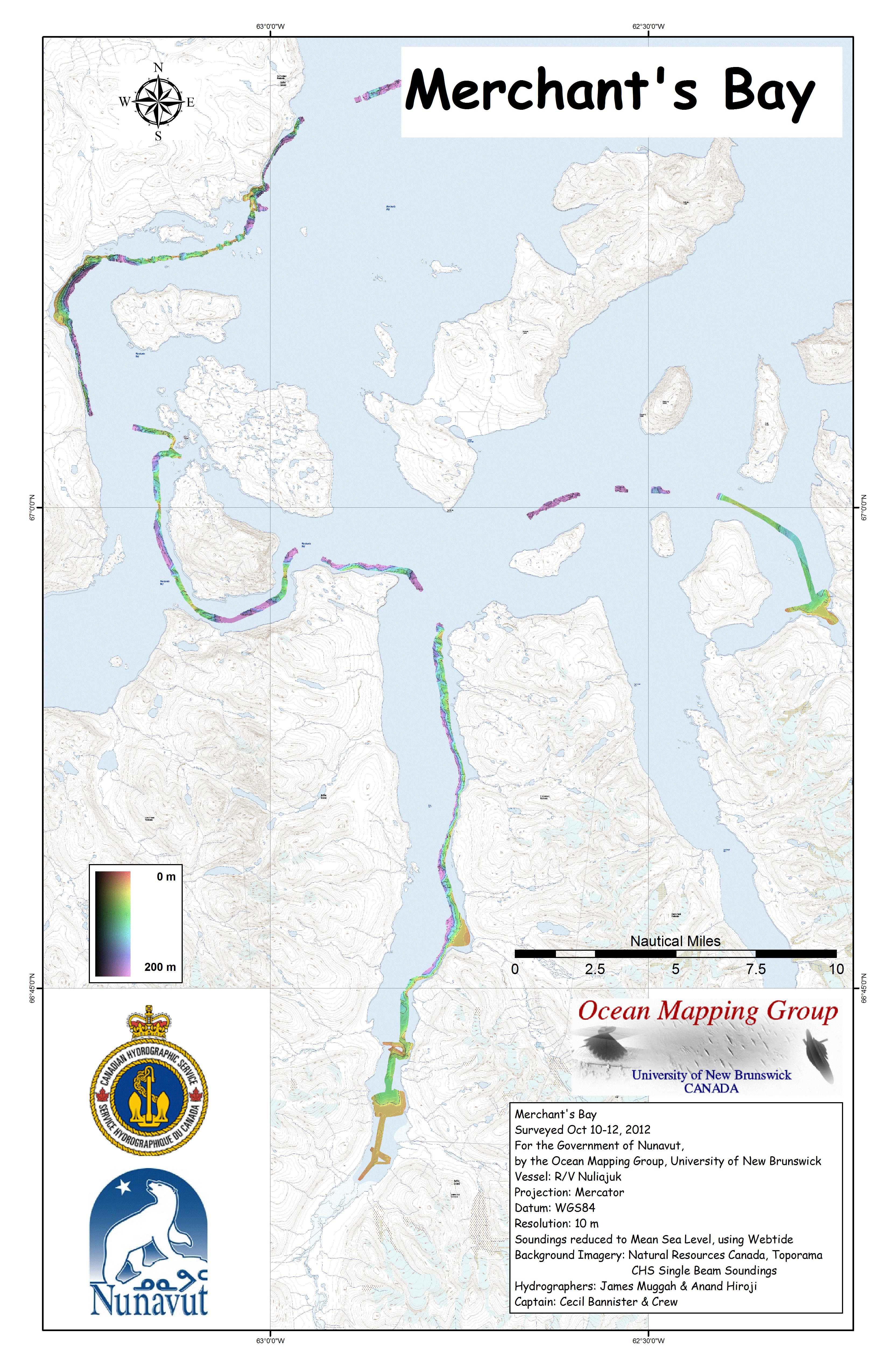 Iqaluit. Apart from a 2 day window in mid August, all the Nuliajuk mapping in Nunavut took place during a 30 day period covering the full month of October. The UNB mapping team boarded in Clyde River and disembarked in Iqaluit. The main target areas were:
