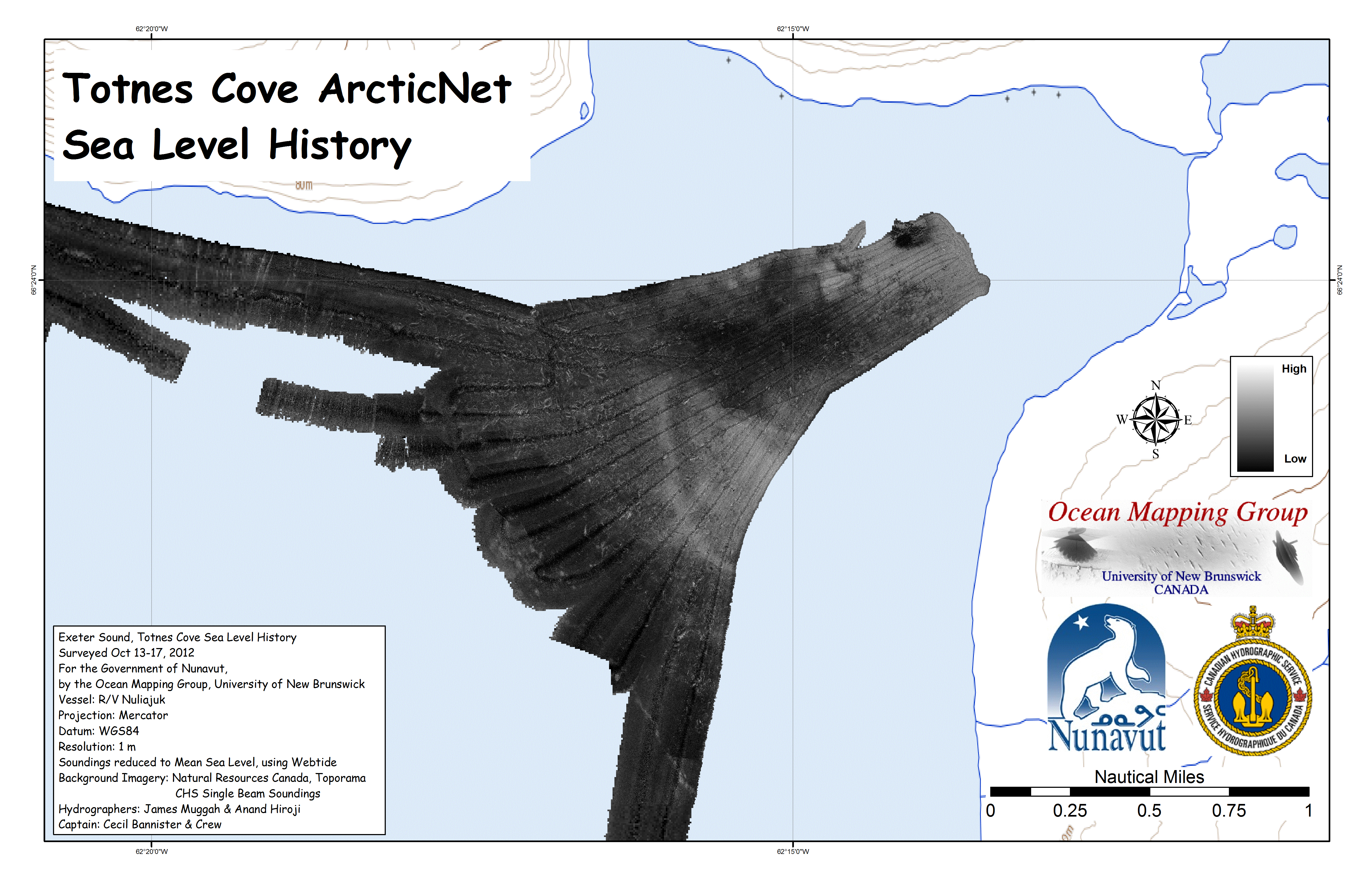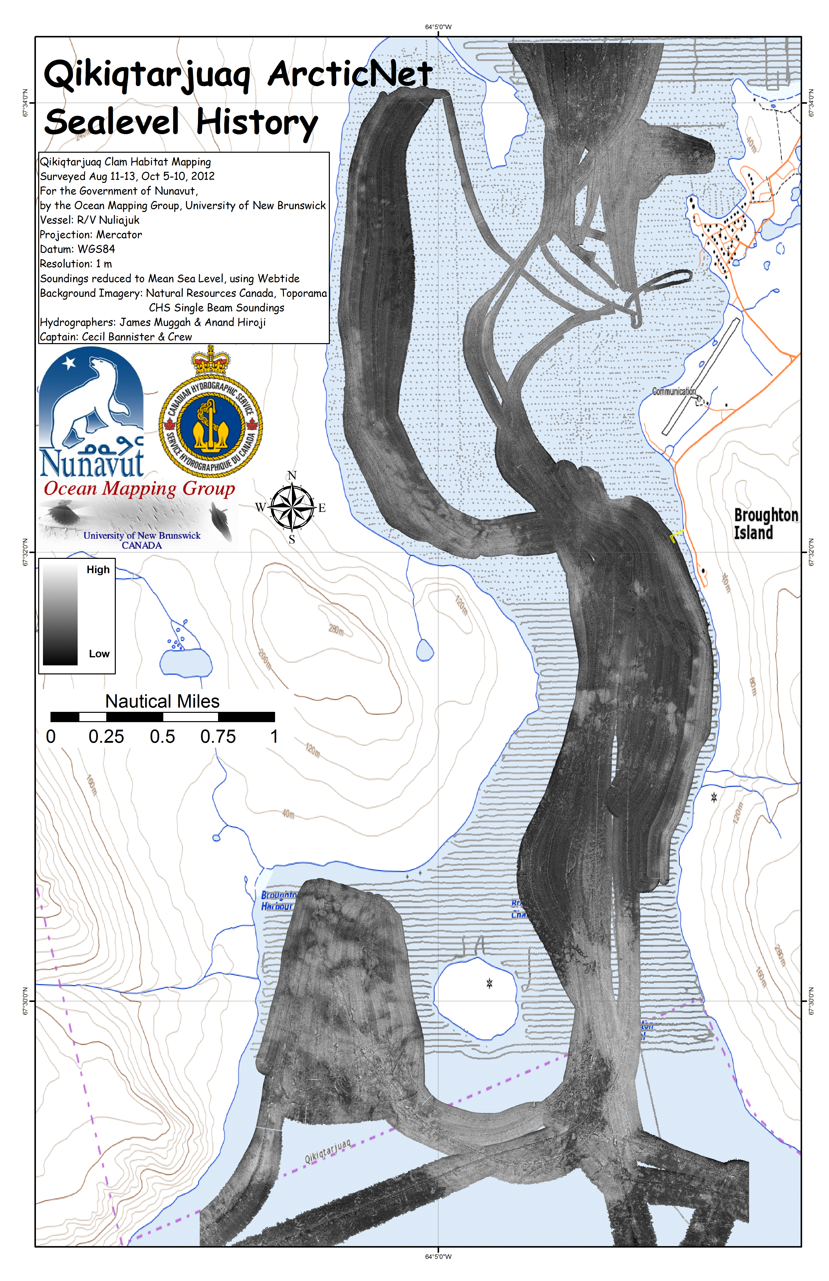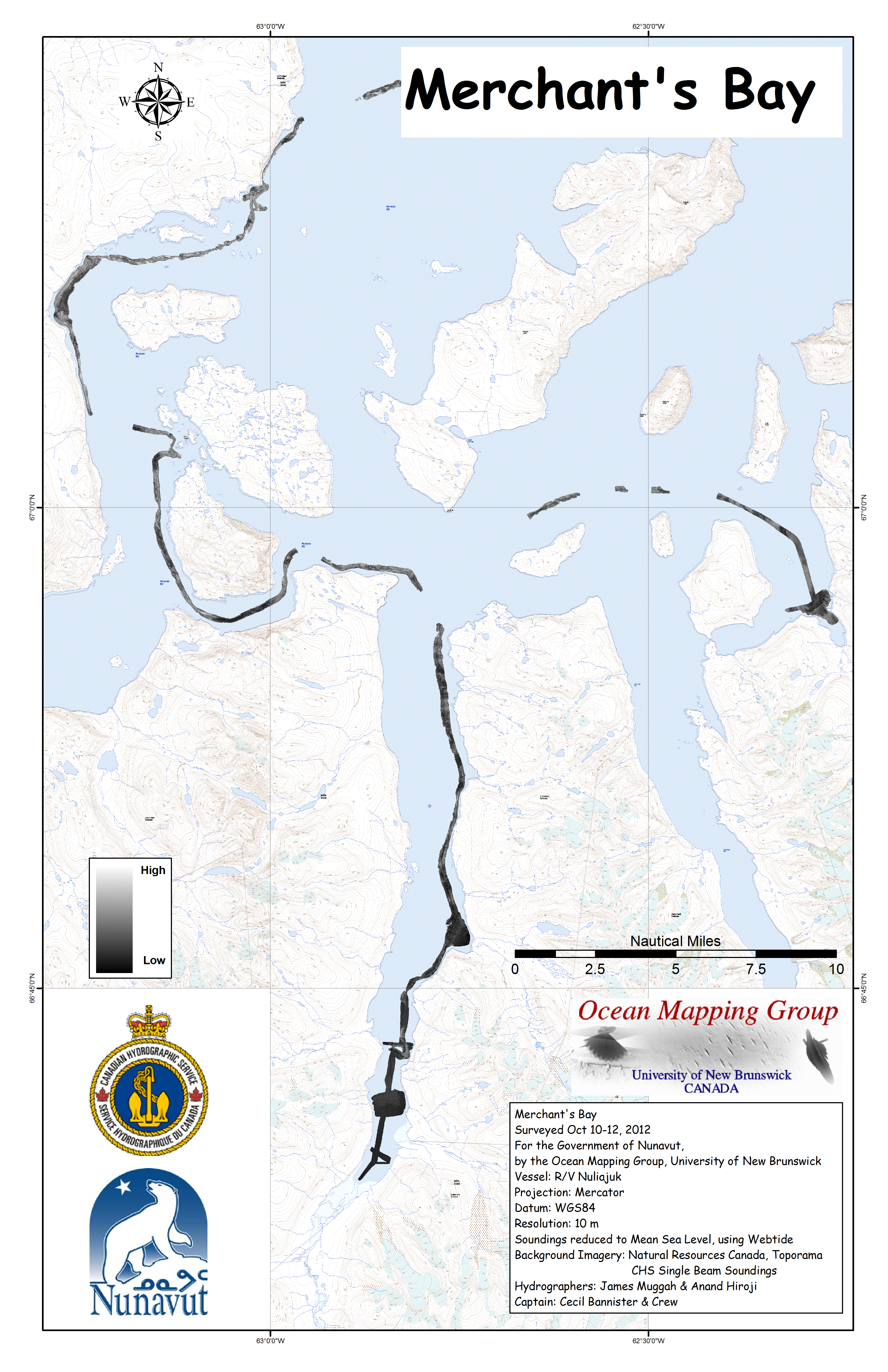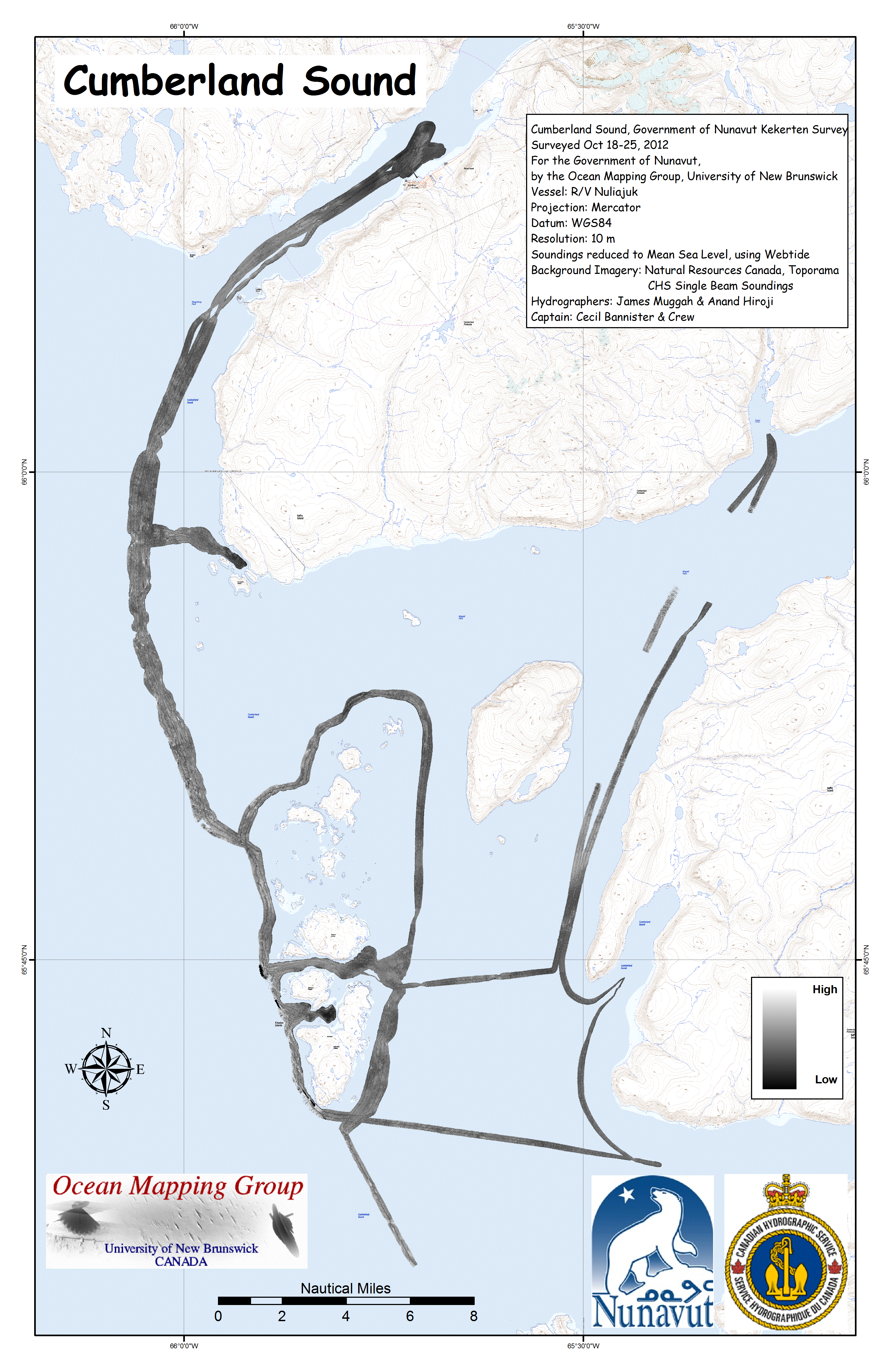 Iqaluit. Apart from a 2 day window in mid August, all the Nuliajuk mapping in Nunavut took place during a 30 day period covering the full month of October. The UNB mapping team boarded in Clyde River and disembarked in Iqaluit. The main target areas were: