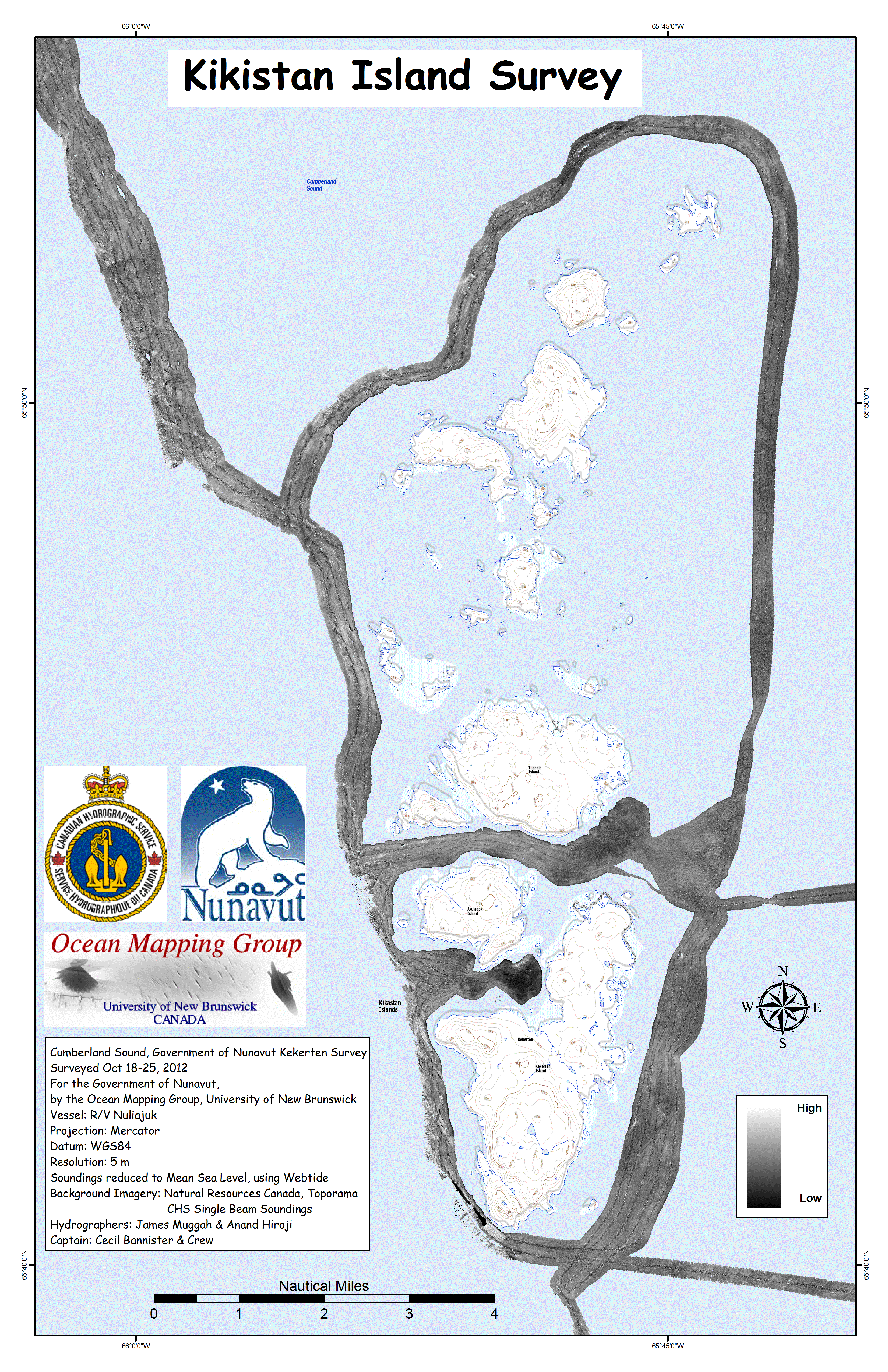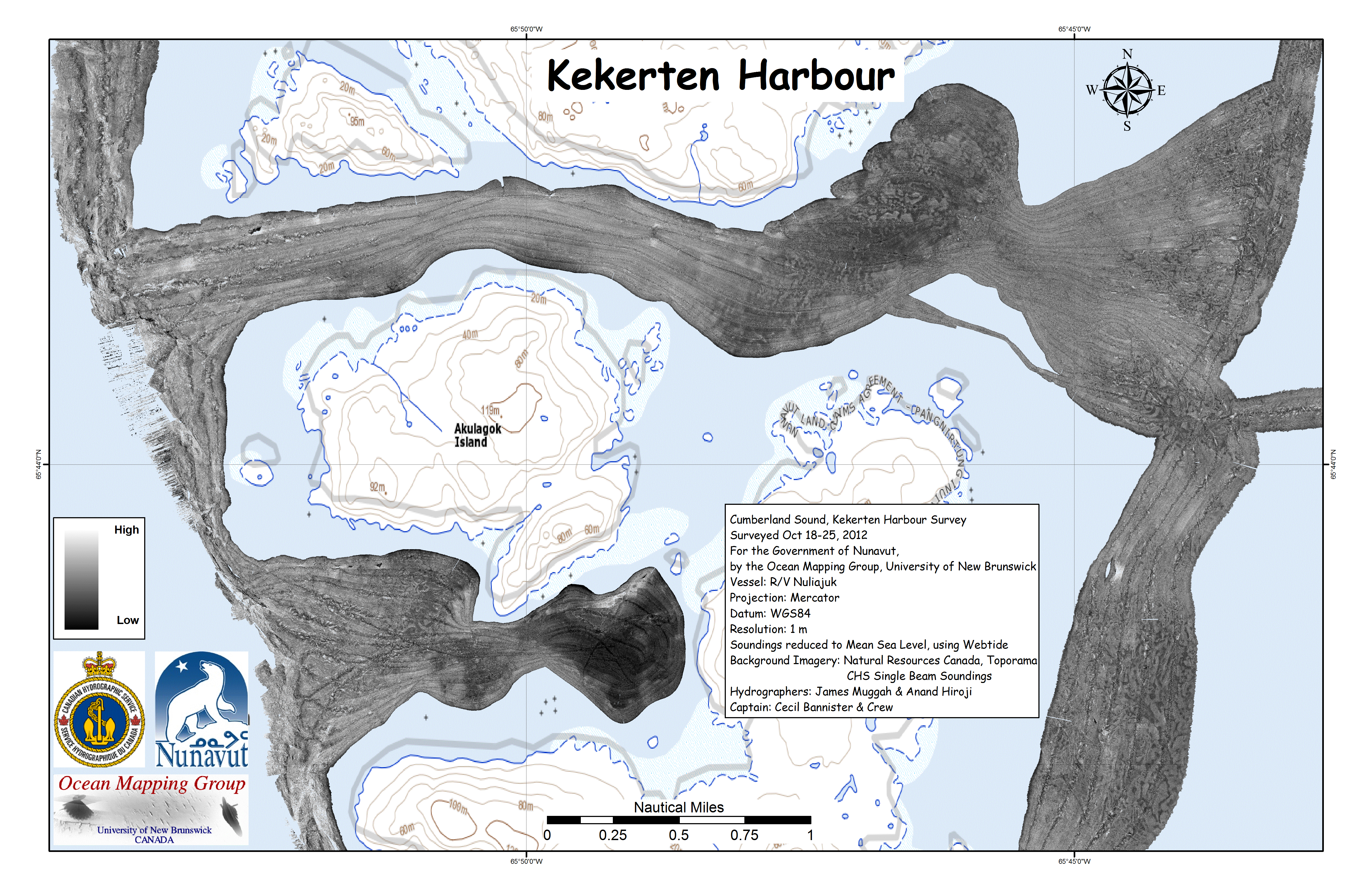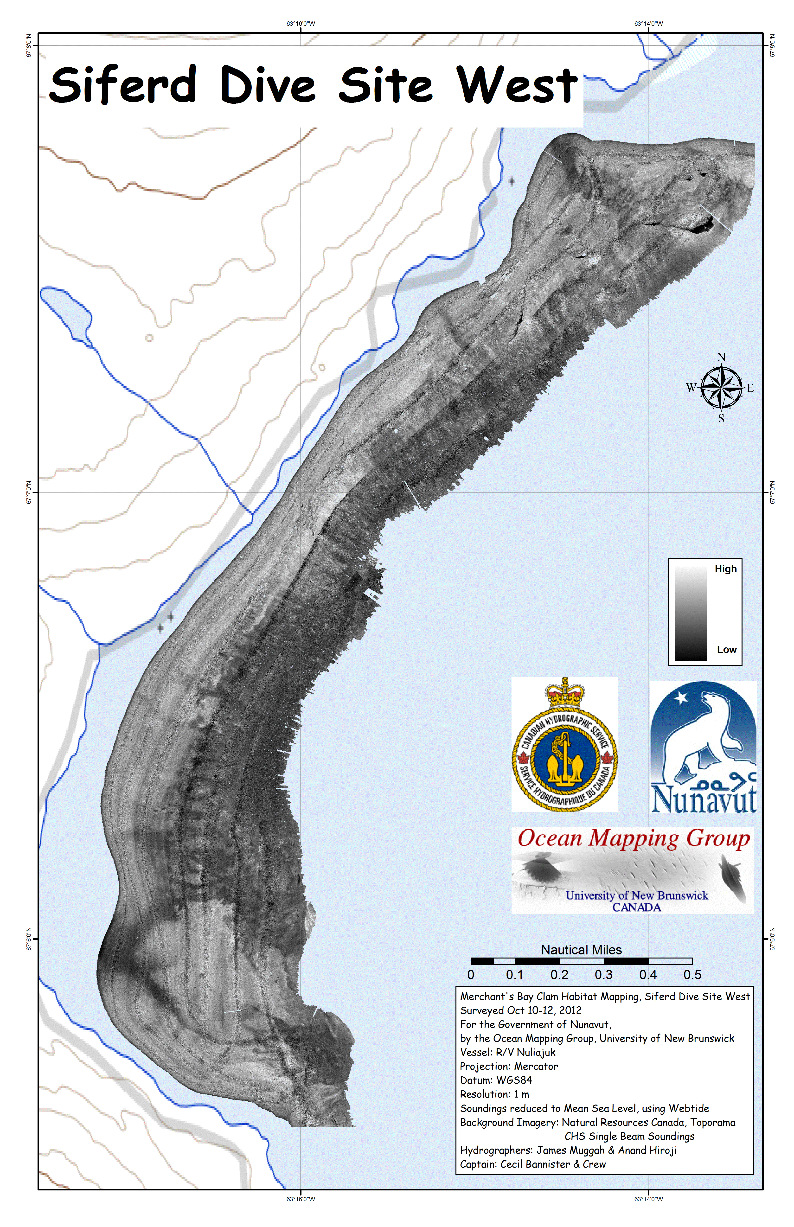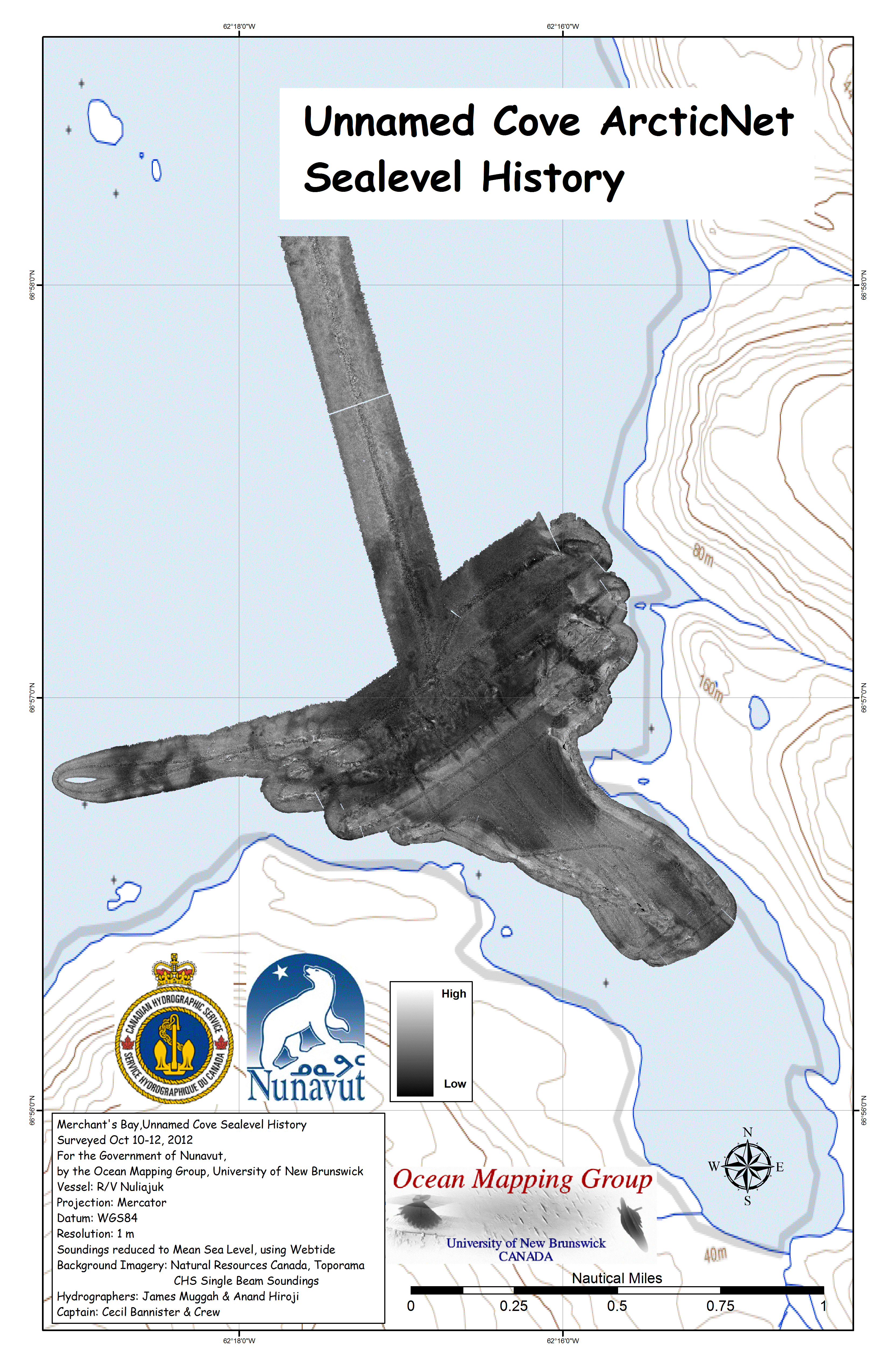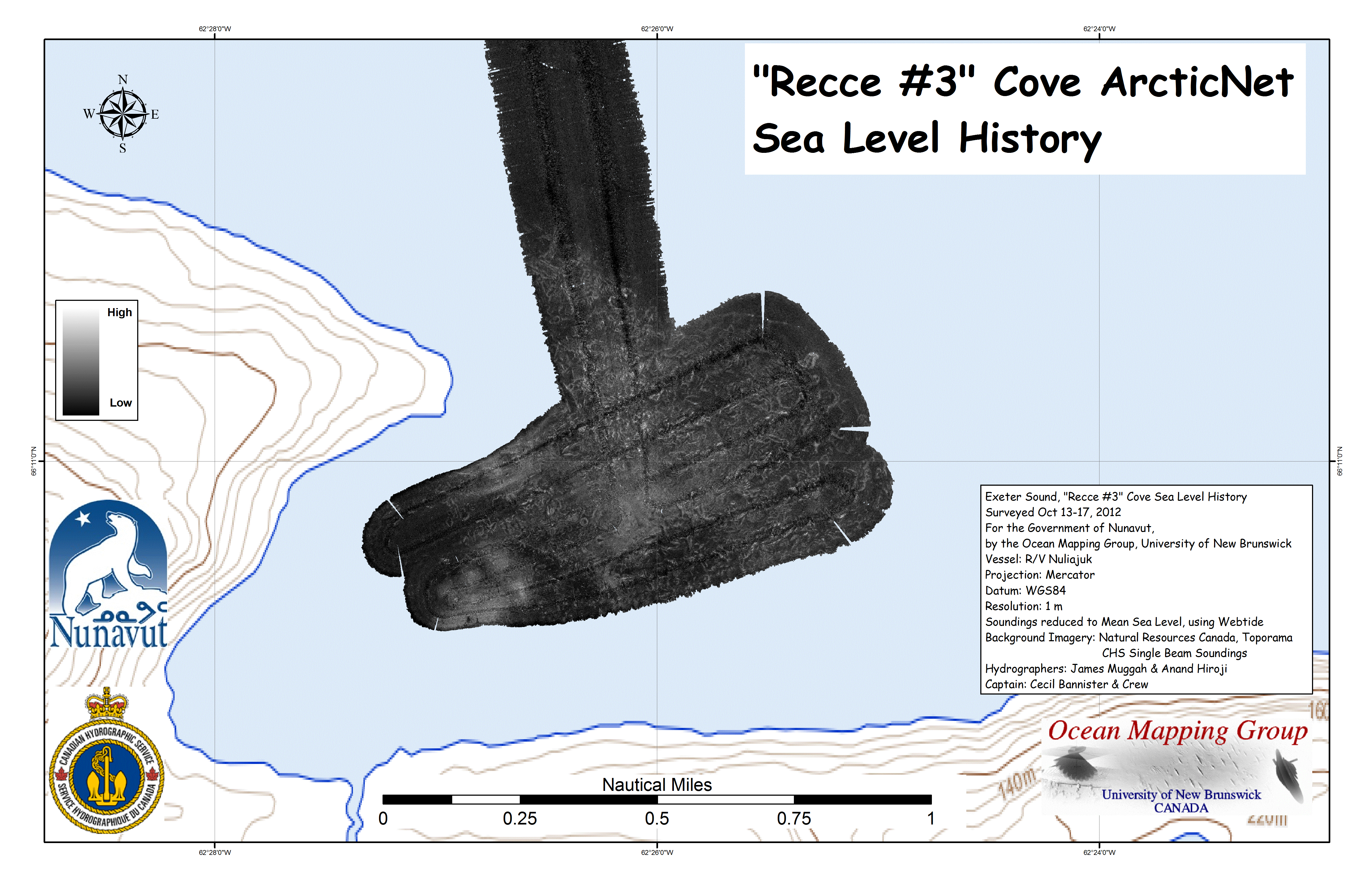 Iqaluit. Apart from a 2 day window in mid August, all the Nuliajuk mapping in Nunavut took place during a 30 day period covering the full month of October. The UNB mapping team boarded in Clyde River and disembarked in Iqaluit. The main target areas were: